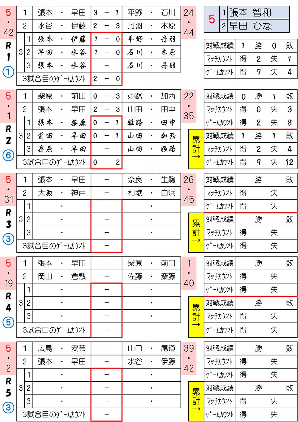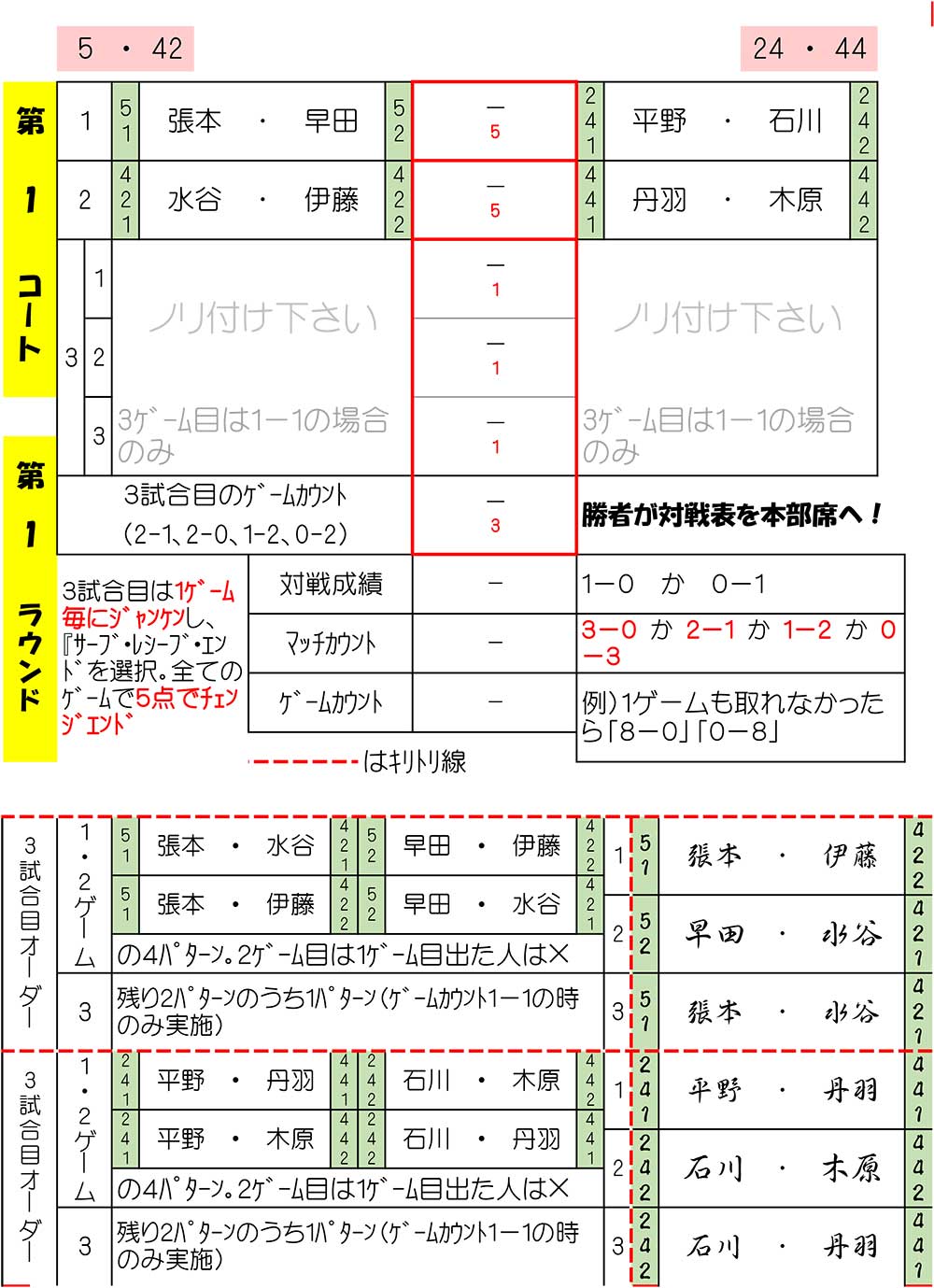 (添付ファイル参照:クリックで画像が開きます) - 1・2試合目はいつものペアとなっています。対戦表に既に記入され指定されています。